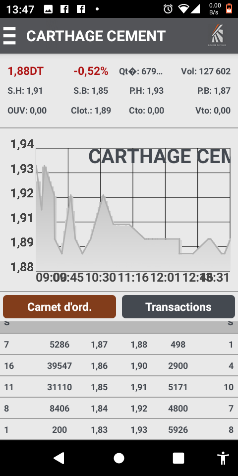 C.B ciment de Bizerte a 0,47dt et tous se dérange que j'ai comparé a CC???
