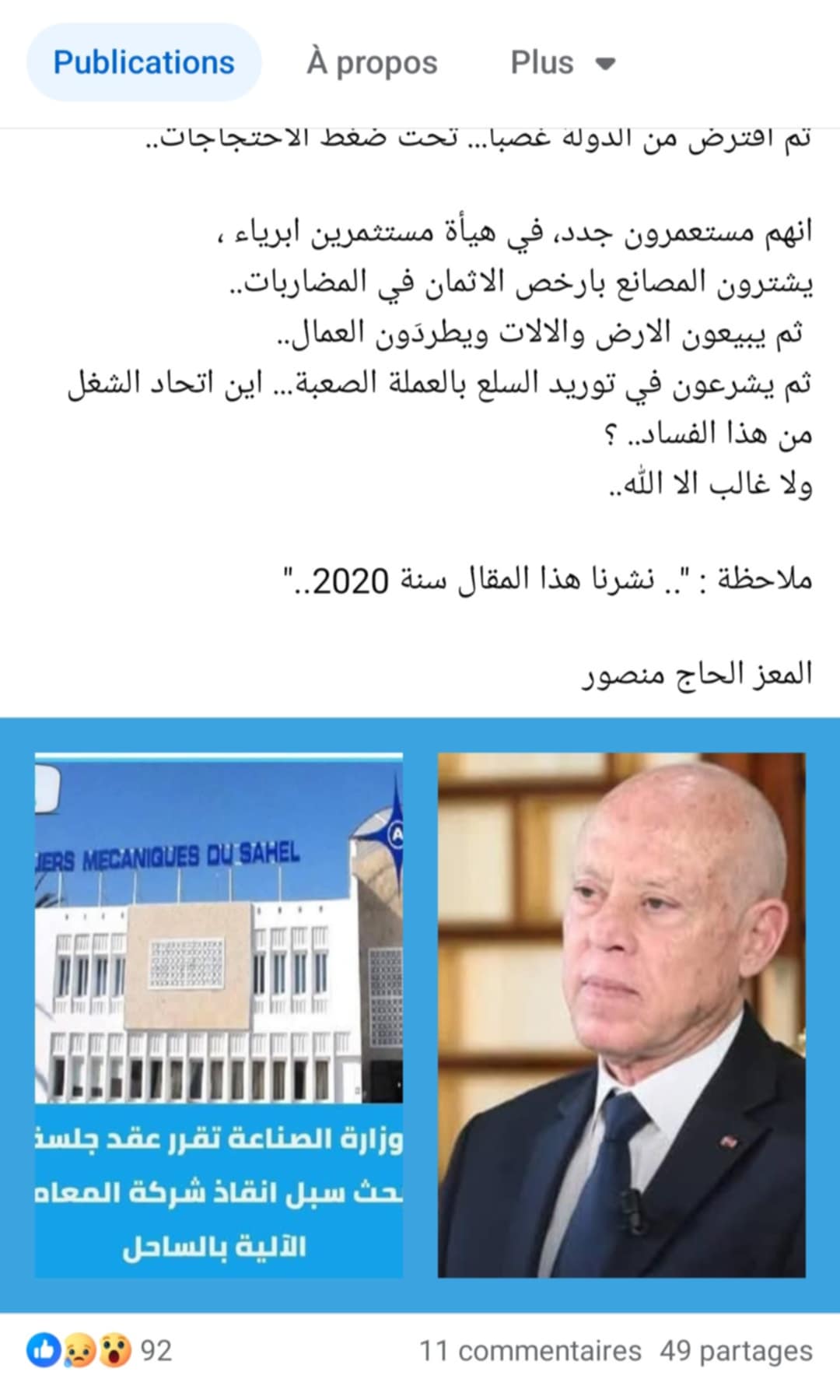 ".. المستثمر الرئيسي لشركة المعامل الآلية بالساحل لازال يماطل طيلة سبعة أشهر بنفس الأساليب ونفس الوعود الواهية مثل :
