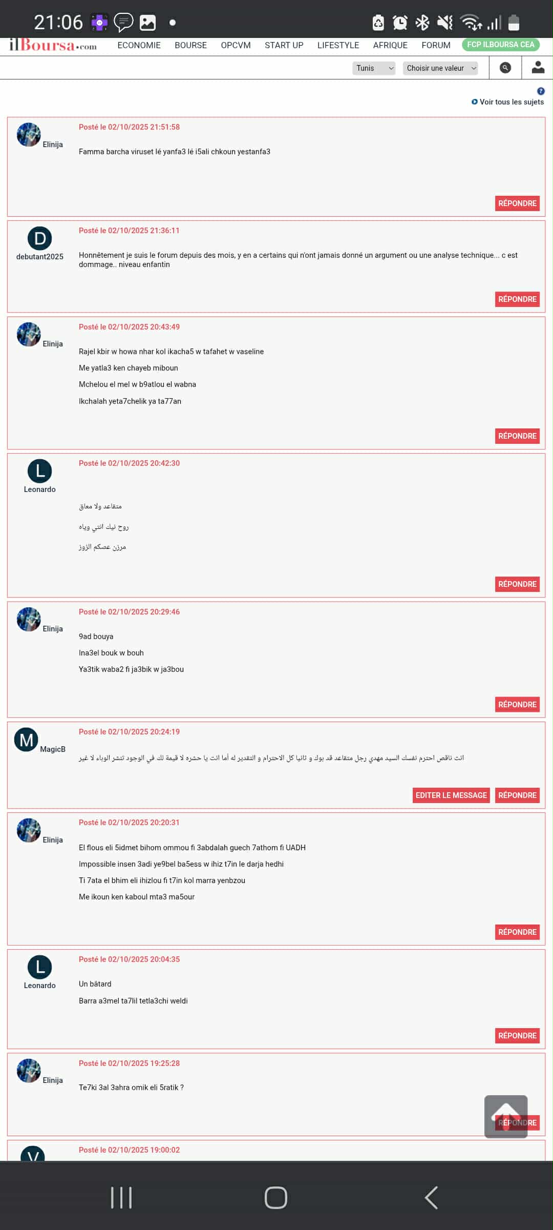 Nous tenons à rappeler que le forum de ilboursa.com est avant tout un espace d’échanges et de partages autour de l’actualité financière et économique. Malheureusement, le niveau des discussions reflète souvent celui de notre société, où il reste difficile de débattre sereinement sans insultes ni attaques personnelles.