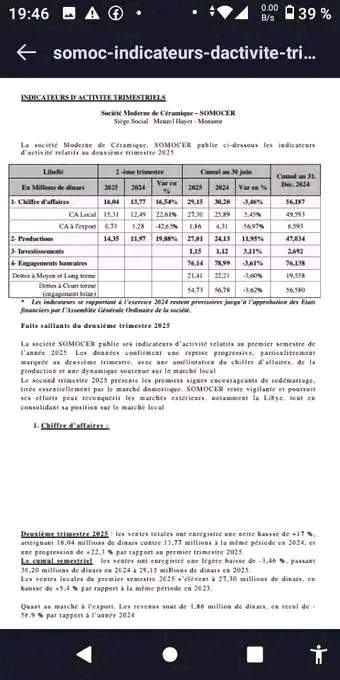 Incroyable lisez c'est quoi somocer en chiffres et vous serez surpris après AGO c'est T2 2025