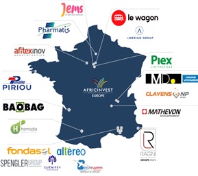 Pour chacune des entreprises françaises de son portfolio, AfricInvest Europe soutient les équipes de direction grâce à l'expérience de longue date du Groupe AfricInvest en Afrique, son vaste réseau sur le continent et l'expertise de ses c. 100 employés répartis dans ses 8 bureaux et antennes locales (Afrique du Sud, Algérie, Côte d'Ivoire, Égypte, Île Maurice, Kenya, Maroc, Nigeria et Tunisie).