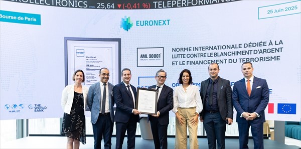 À l'occasion de la cérémonie internationale de remise officielle de certifications d'entreprises, organisée par COFICERT et l'IGSF, en collaboration avec EURONEXT – La Bourse européenne (Paris, Amsterdam, Bruxelles, Dublin, Lisbonne, Milan, Oslo …), TUNISIE VALEURS s'est vu remettre la certification AML 30001® (AML/CFT version 2025) - Norme internationale dédiée à la lutte contre le blanchiment d'argent et le financement du terrorisme.